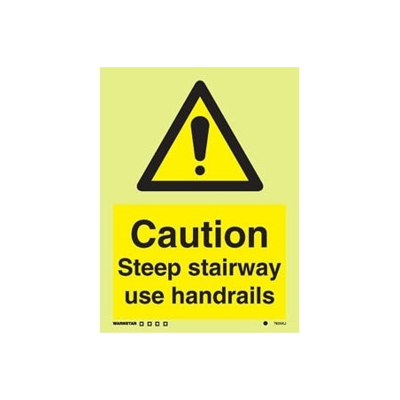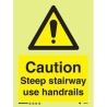 CAUTION STEEP STAIRWAY USE HANDRAILS HG 20*15